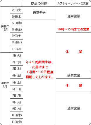年末年始の商品発送およびカスタマーサポートの営業についてのご案内