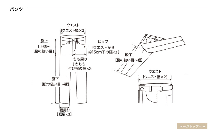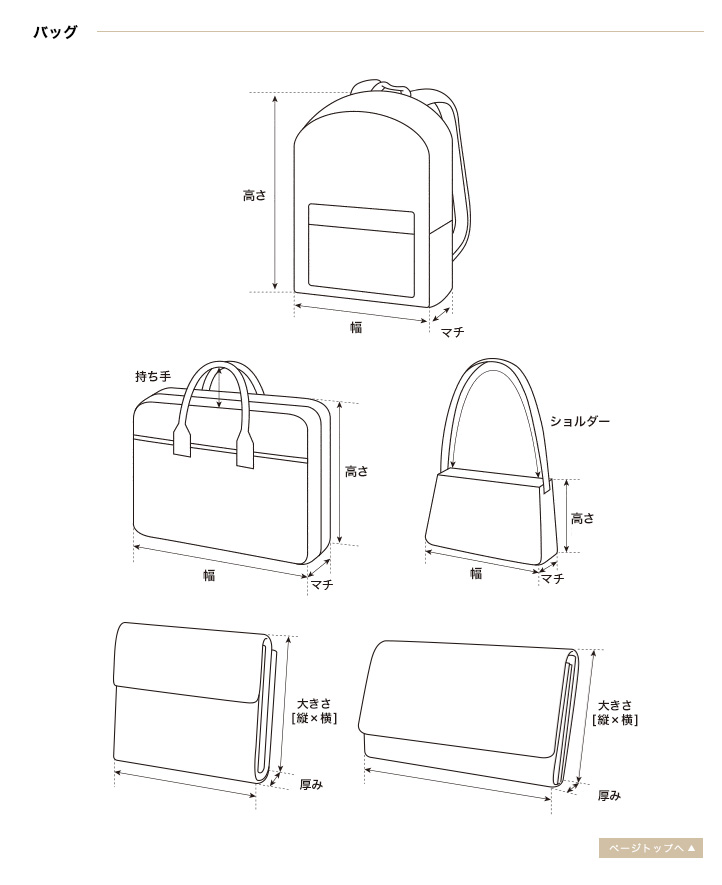 ※商品やアイテムの形状によっては、サイズガイドに記載のない箇所の採寸を行う場合がございます。