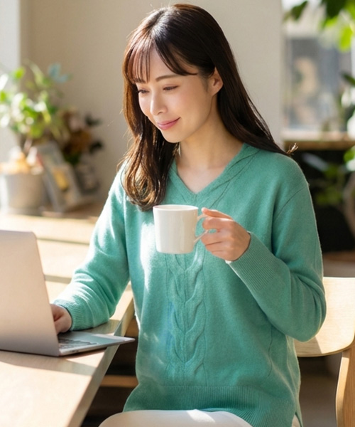 カシミヤ ケーブルVネックセーター