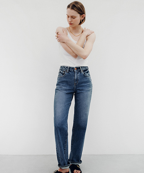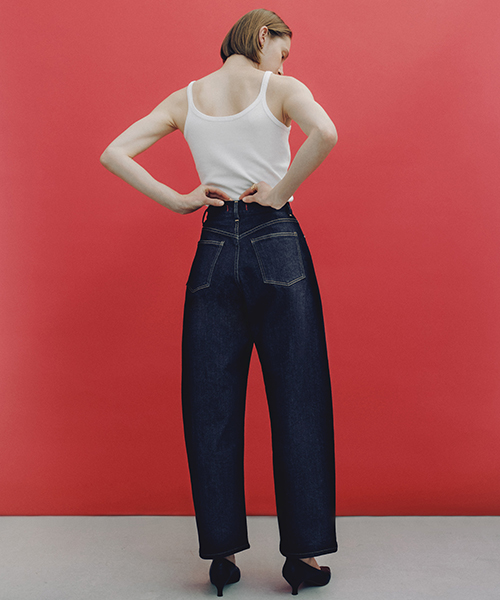 「モンロー・デニム」として知られるストレートシルエットをベースに、TOMORROWLANDが別注したセミワイドデニム。 ウエストからヒップにかけてのカーブがヘルシーで美しいラインを演出します。裾のターンアップが足元の軽やかなアクセントに。