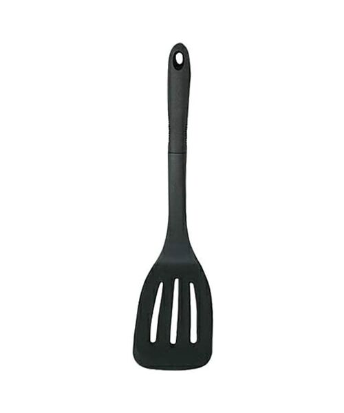 ゆるやかな角度が付いていて、フライパンにフィットしやすいナイロンターナー。しなりにくく、食材の返しもスムーズにできます。食洗機使用可能。