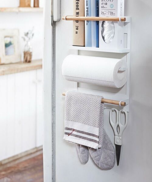 冷蔵庫側面に磁石で簡単取り付け。よく使うキッチン小物を一括収納。よく使うキッチン小物や調理道具を掛ければ、作業がスムーズになり、調理時間を短縮できます。