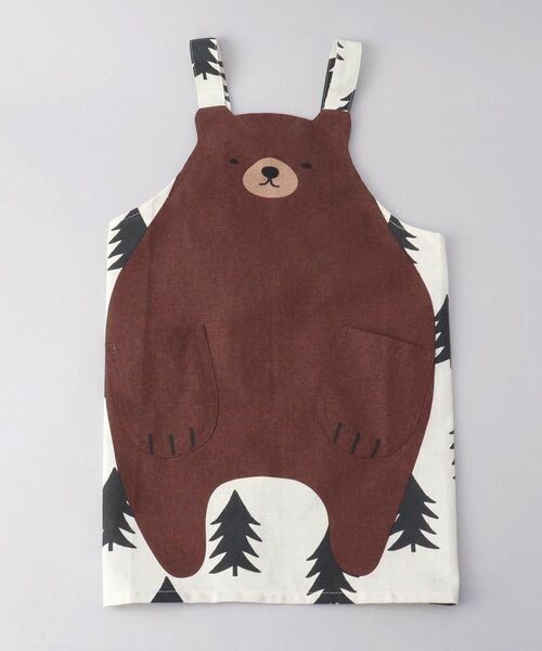 クマがモチーフのキッズエプロン。おそろいの三角巾付きです。