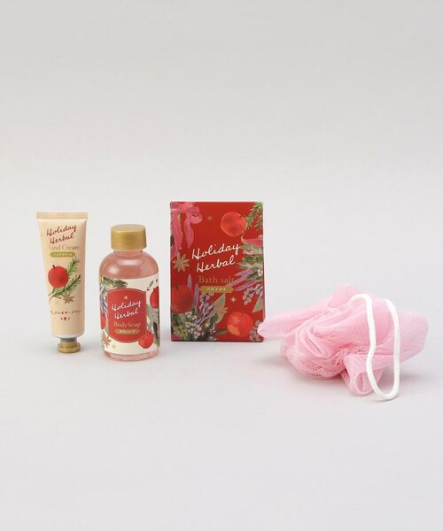 ボディソープ、ハンドクリーム、バスソルト、スポンジの4点が入ったセット。