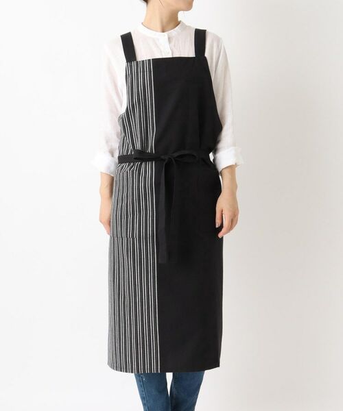 エプロンのスタイルは肩が凝らない後ろクルス型で長時間着ていてもらくちんな1枚です。
