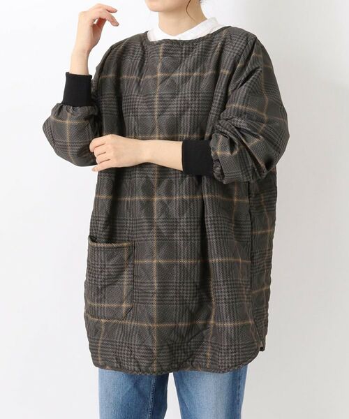 袖口リブ付きで家事水仕事も快適な、裏ボアつきのキルトかっぽうぎ。