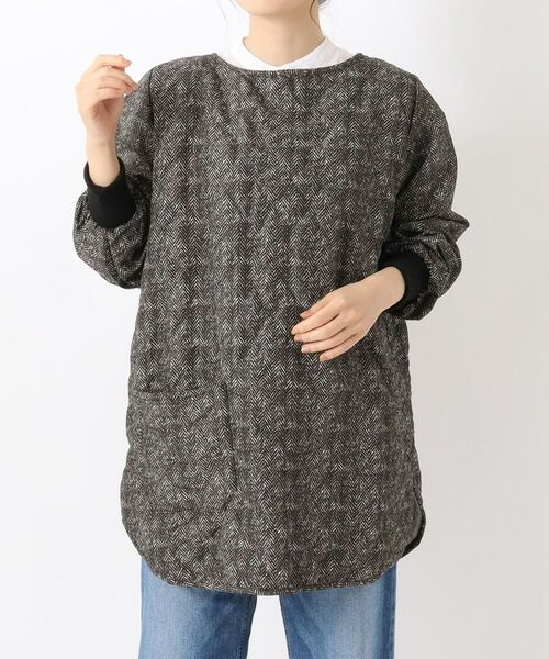 袖口リブ付きで家事水仕事も快適な、裏ボアつきのキルトかっぽうぎ。