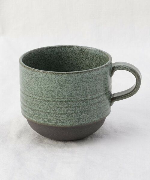 雰囲気のある釉薬とボーダーの削りがアクセントになっているマグカップです。