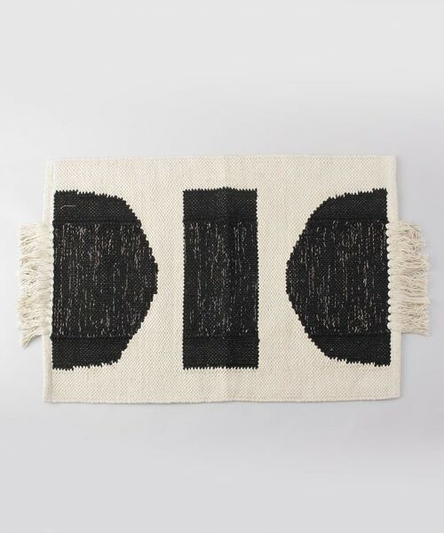 モノトーンの幾何学模様と両サイドについたフリンジがポイントの玄関ラグ。