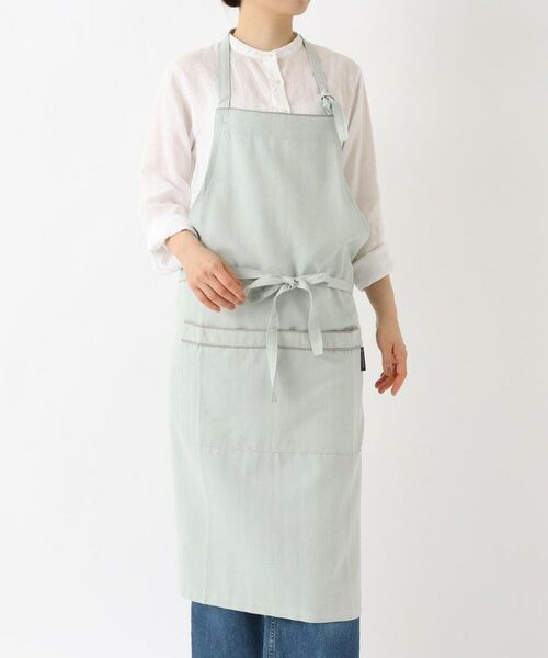 ヘリンボーン生地にパイピングでアクセントを加えたエプロンです。