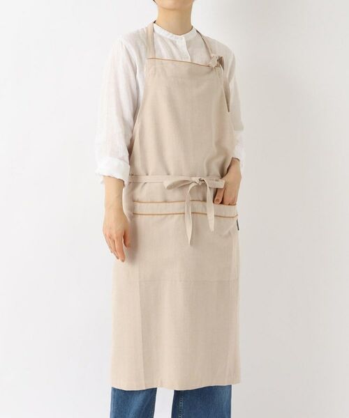 ヘリンボーン生地にパイピングでアクセントを加えたエプロンです。