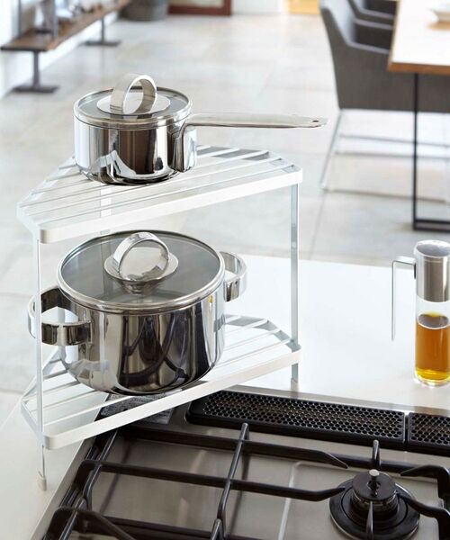 コンロのコーナーに置いて調理中の鍋や調味料などを置いておける便利なキッチンコーナラック。コンロ以外にもキッチンの収納棚としても便利です。耐荷重:各棚約2.5kg本商品は、ご注文確定後に取り寄せにてお客様への出荷手配をさせていただきますので、お届けまでに7~10日前後かかる場合がございます。また、商品は他社サイトと在庫を共有しているため、ご注文いただいた商品が欠品となり、キャンセルとなる場合がございます。