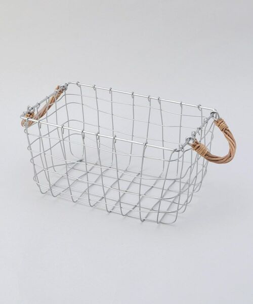統一感のないものでもワイヤーバスケットに入れることでまとまりが生まれ、お洒落なカフェのような雰囲気に。ループ部分に編まれた柳がワンポイント。