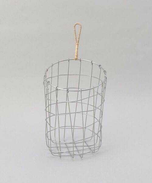 統一感のないものでもワイヤーバスケットに入れることでまとまりが生まれ、お洒落なカフェのような雰囲気に。ループ部分に編まれた柳がワンポイント。