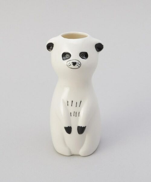 動物をモチーフにした磁器製のフラワーベース。白い磁器で出来たぽってりとした丸い体に、黒の釉薬を使いハンドメイドで動物の表情を仕上げました。