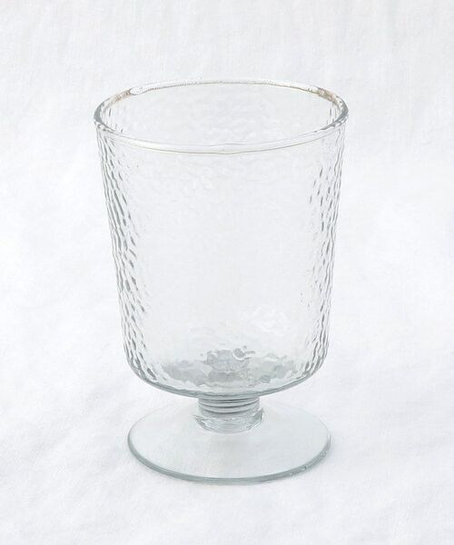 ガラスの表面に凸凹のテクスチャーが入ったリサイクルガラスのグラス。
