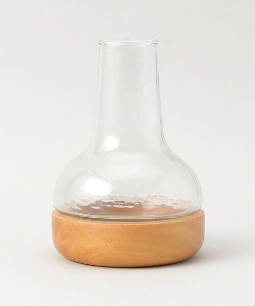 ハンマートーン仕上げのガラスとマホガニー製の土台がセットになったフラワーベースです。