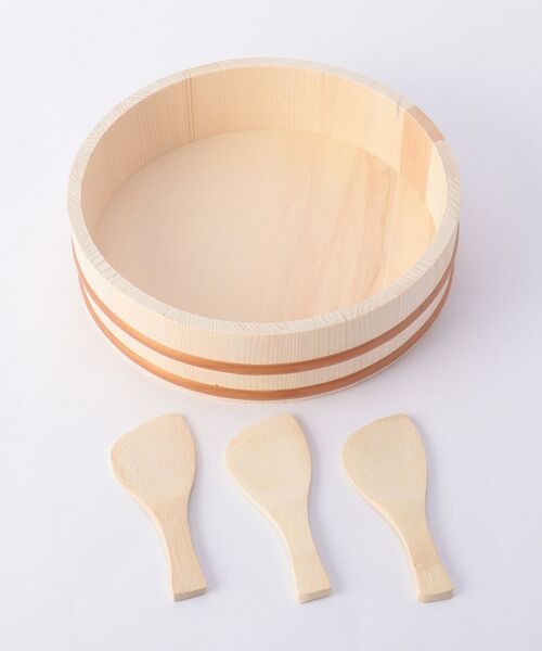 しゃもじがセットになったすし桶。しゃもじは3本付いています。ご飯は約3合で、2~3人向けです。【取り扱い方法】食洗器/乾燥機:×電子レンジ:×オーブン:×本商品は、ご注文確定後に取り寄せにてお客様への出荷手配をさせていただきますので、お届けまでに7~10日前後かかる場合がございます。また、商品は他社サイトと在庫を共有しているため、ご注文いただいた商品が欠品となり、キャンセルとなる場合がございます。