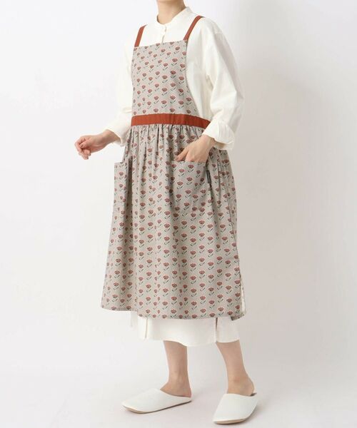 後ろで紐を結ばないバッククロスタイプ、着脱しやすく、ふんわりとしたギャザーで女性らしさを引き立てます。