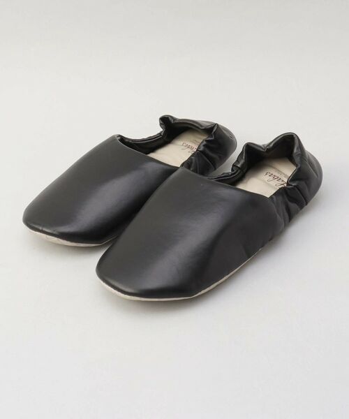 かかとを踏んでも立てても履けるバブーシュタイプ。