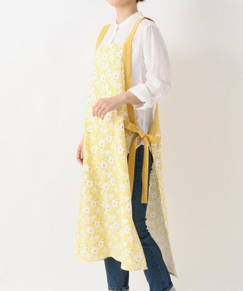 腰でリボン結びをすることで紐がアクセントになる背付きの着心地の良いエプロンです。