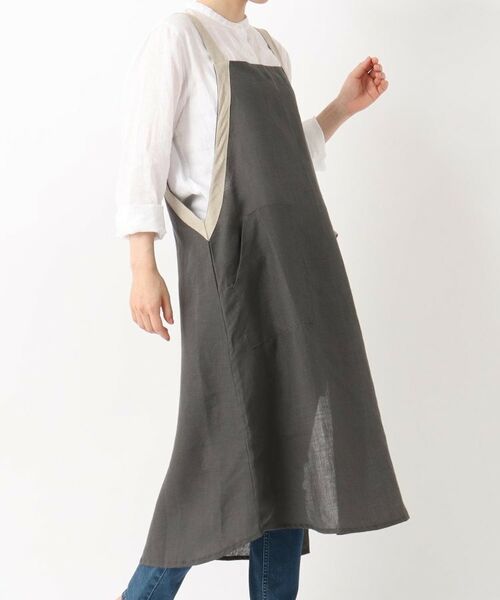 リネン サイドリボンエプロン GY <212Kオリジナル>