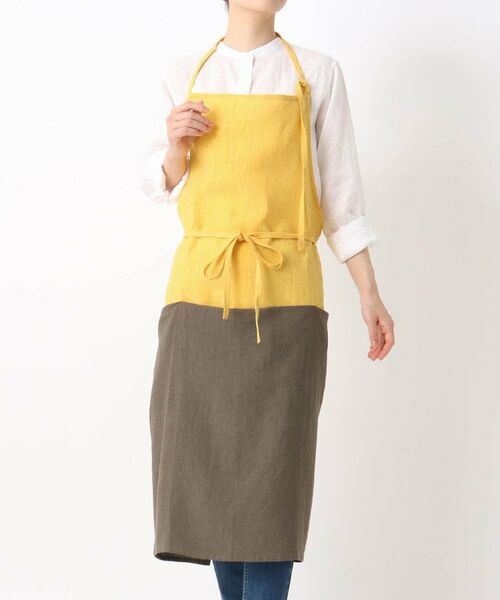 肩ひもは約1cm幅で軽い仕上げになっており、胸当て部分を腰ひもの位置で折りたたむとサロンエプロンとしてご使用いただけます。