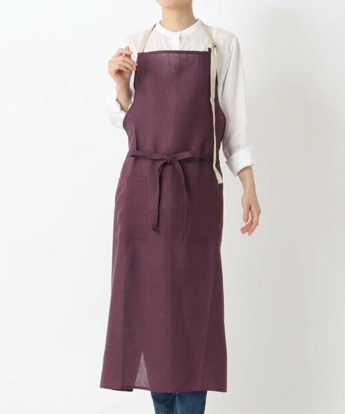 ホルターネックの肩紐がアクセントになった、ユニセックスに使えるソリッドカラーのリネンエプロンです。