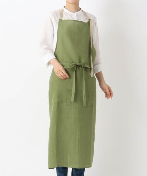 ホルターネックの肩紐がアクセントになった、ユニセックスに使えるソリッドカラーのリネンエプロンです。