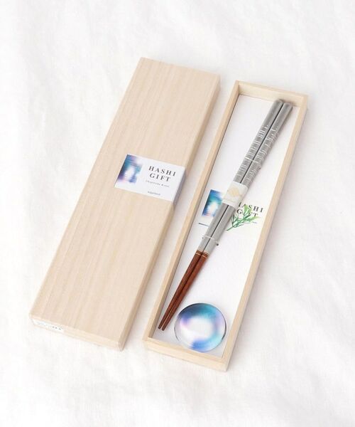 海のデザインの箸と涼しいガラスの箸置きセットです。