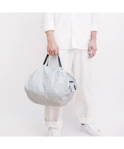 荷物の重さで、入り口がしぼれるから、外側から中身が見られにくいです。いつでもバッグに入れておけるコンパクトサイズ。一週間のちょこっと買い足しにもおすすめです。エコバッグ、サブバッグとして使えます。毎日~週2程度の食料品買い足しを想定したサイズ感です。