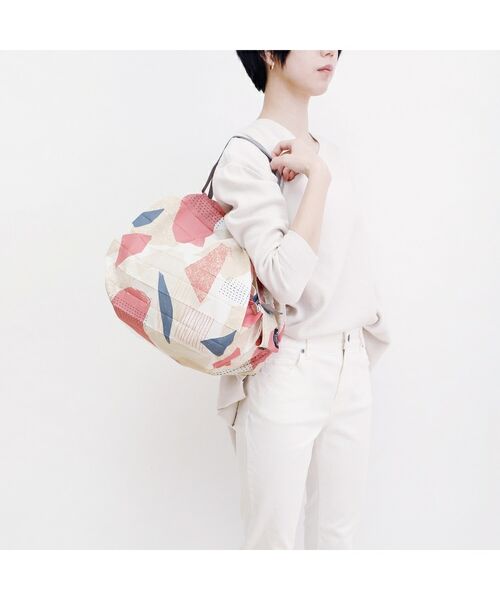 荷物の重さで、入り口がしぼれるから、外側から中身が見られにくいです。いつでもバッグに入れておけるコンパクトサイズ。一週間のちょこっと買い足しにもおすすめです。エコバッグ、サブバッグとして使えます。毎日~週2程度の食料品買い足しを想定したサイズ感です。