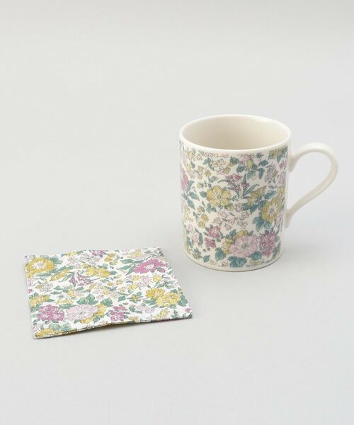 リバティプリントの花柄が可愛らしくエレガントな装いのマグカップです。