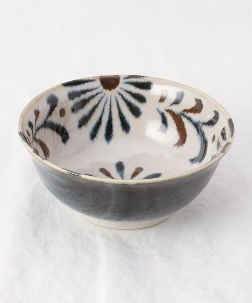 藍色と茶色で力強く大胆に描かれた文様が、食卓やお料理を楽しく華やかに彩ります。