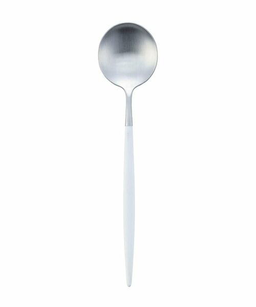 細身で上品なフォルムながら、ホワイトシルバーのハンドルが利いている、ポルトガル・クチポールのカトラリーシリーズ「GOA」。