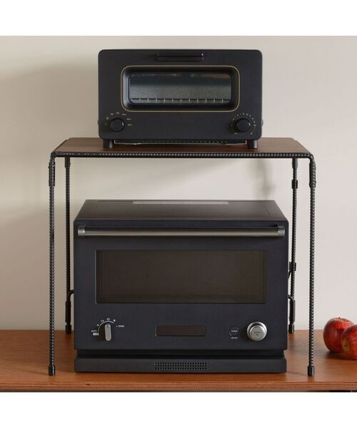 電子レンジの上部にデザイン家電をスマートに収納できます。
