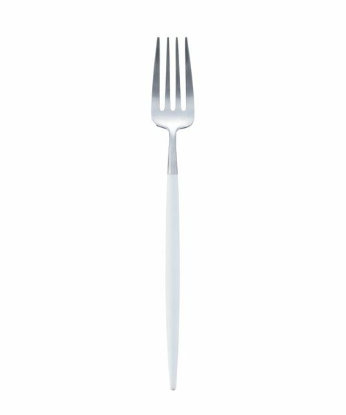 細身で上品なフォルムながら、ホワイトシルバーのハンドルが利いている、ポルトガル・クチポールのカトラリーシリーズ「GOA」。