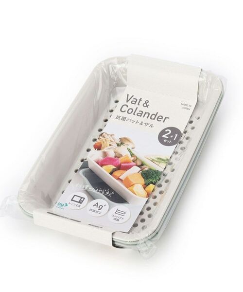 コンパクトに重ねて収納できる、バット2個、ザル1個のセットです。