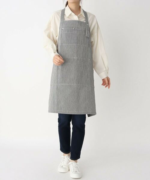 白のストライプが特徴的なヒッコリーエプロンです。