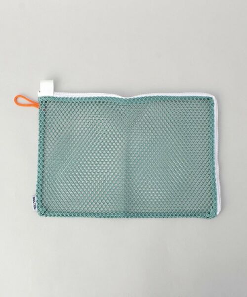 グリーンにオレンジのフープがアクセントの効いたメッシュポーチ。