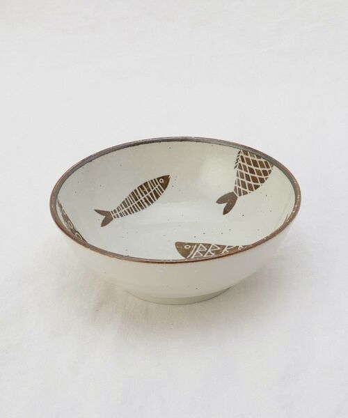 魚のデザインが入った粉引調のやさしい釉薬が特徴で日本の食卓によくなじむ器のシリーズです。