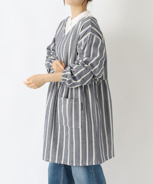 首周りはVネックですっきりと、首元はゴム仕様になっているので着脱もラクです。