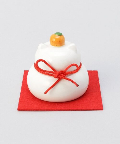 つるりと滑らかな、陶器でできた猫耳付き鏡餅です。