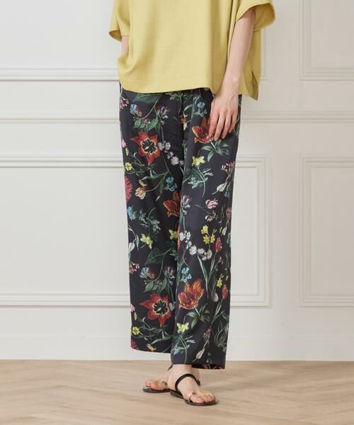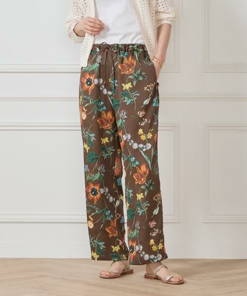 広がりすぎないスッキリとしたストレートラインのプリントパンツです。ウエストのゴム仕様がリラクシーな穿き心地ながら、落ち感のあるちりめんサテンの生地を使用し、ラフさを控え上品に仕上げています。スタイリングの主役としてはもちろん、コーディネートを新鮮に引き立ててくれるアイテムです。・裏地なし・ポケットあり・ウエストゴム仕様・水洗い可■サンプル撮影商品■こちらの商品はサンプルでの撮影となっております。実際の商品とは、サイズや色味、素材、デザイン等の仕様が若干変更になる場合がございます。