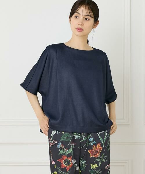 ボクシーなシルエットが特徴のブラウスです。ショルダーラインのタックや前後さのあるヘムラインでニュアンスをつけました。コンパクトな丈感もポイントです。上品なボートネックのサイドにマチをつけ気になるネックポイントをカバーしました。麻調のさらりとした素材感とゆったりとしたシルエットでストレスなく快適にご着用いただけます。・水洗い可・後ろファスナーあり同素材のパンツ品番:7052161025■サンプル撮影商品■こちらの商品はサンプルでの撮影となっております。実際の商品とは、サイズや色味、素材、デザイン等の仕様が若干変更になる場合がございます。