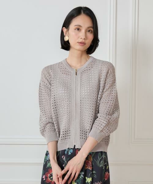 見た目が涼し気な透かし柄のジップアップカーディガンです。透かし柄が大きいのでインナーとのコーディネートも楽しんでいただけます。袖丈は7分袖と初夏に羽織りやすいシルエットにしており、着丈も短めにしているのでワンピースや様々なボトムとの相性も良いです。・水洗い可■サンプル撮影商品■こちらの商品はサンプルでの撮影となっております。実際の商品とは、サイズや色味、素材、デザイン等の仕様が若干変更になる場合がございます。