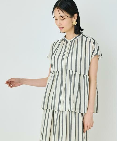 身体のラインを拾わないAラインのシルエットが特徴のペプラムブラウス。華奢なバンドカラーや前立てのディテールでメリハリを付けました。襟ぐりのギャザーやペプラム部分の分量感に拘り、上品に仕上げました。気になる二の腕をカバーする袖丈もポイントです。ヨーク切り替えやギャザーディテールでバックスタイルにも表情を付けました。