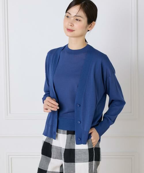 詰まり過ぎない程よい度目で、さまざまなコーディネートに馴染む一着。共糸で仕立てたフラットなくるみボタンが、さりげない上品さを添えます。ボタンを留めればプルオーバーとしても着られるVネックデザイン。軽やかな着心地で、バッグに入れて持ち運びしやすいのも魅力です。ノースリーブワンピースなどとのレイヤードに好相性なサイズ感で、同素材のプルオーバーと合わせたセットコーデもおすすめ。