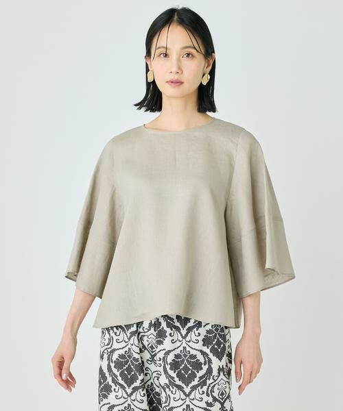 切り替えを活かしたボリュームスリーブがポイントのプルオーバーブラウス。トレンド感のある短めの着丈ですっきりと仕上げました。ややAラインのシルエットや広い袖口で締め付け感のない涼しい着心地を叶えます。やや詰まった上品な襟ぐりは後ろにスリットあきを施し、ストレスなく着脱いただける様にしました。
