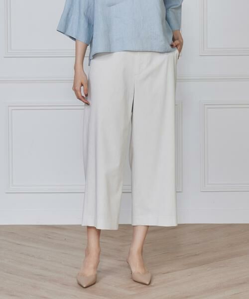 リネン混で清涼感のある素材を使用したワイドクロップトパンツ。ウエスト周りをすっきりと見せつつ、ゴム仕様や素材のストレッチ性で穿き心地の良さに配慮しました。程よい分量感とシンプルなディテールで汎用性の高いデザインに仕上げました。ドライでサラッとしたタッチも嬉しいポイント。夏をきれいめに乗り切れるパンツです。